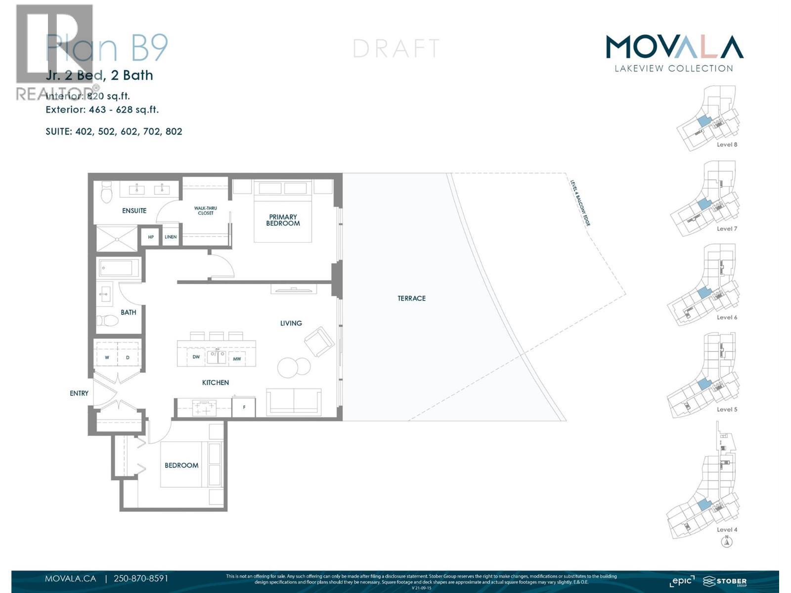 Welcome to MOVALA, Kelowna’s premier beachside residence nestled in the heart of the coveted South Pandosy neighborhood. This stunning 2-bedroom, 2-bathroom home offers 820 sq. ft. of thoughtfully designed interior living space and an exceptional 628 sq. ft. lake view covered patio featuring level paver tiles, natural gas hookups—perfect for entertaining or enjoying the sunset over Okanagan Lake. The chef’s kitchen boasts an island, quartz countertops, sleek cabinetry and premium appliances, creating a homey living space. The primary ensuite features a luxurious spa-inspired design and a walk-through closet for seamless functionality. Additional highlights include 1 storage locker and 1 parking spot. Every detail has been considered to combine comfort, style, and practicality. Residents enjoy access to MOVALA’s resort-style amenities, including an oversized swimming pool, hot tubs, communal BBQs, cabanas, fitness and yoga center, guest suites, co-working spaces, and an elegant party room with full kitchen and dining area. Located steps from Gyro Beach, boutique shopping, fine dining, and all that Pandosy Village has to offer, this home represents the ultimate in luxurious lakeside living. (id:6769)
