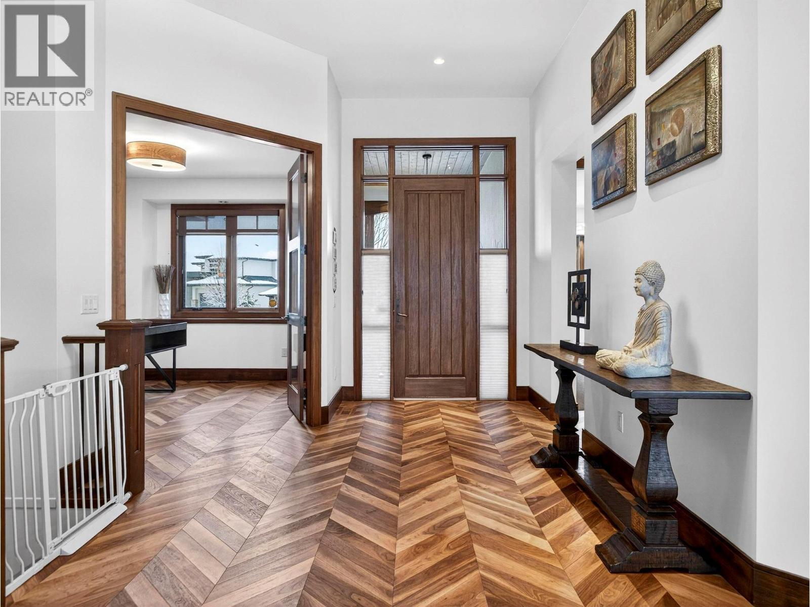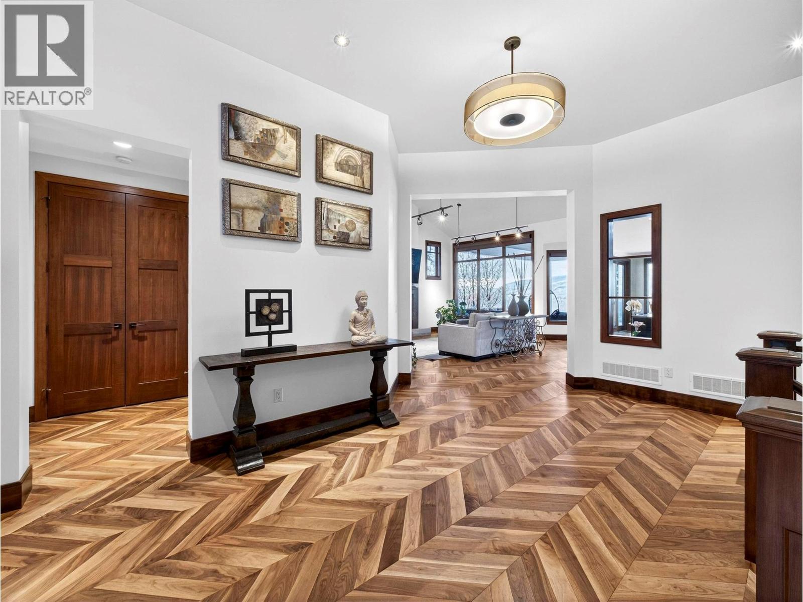 This stunning 4 Bedroom + Den residence blends luxury with timeless modern design and unobstructed panoramic lake views. Gorgeous herringbone hardwood floors, soaring ceilings, and a cozy gas fireplace create an inviting yet elevated atmosphere in the great room, enhanced by expansive windows that frame the surrounding scenery. The open-concept layout flows into a spacious dining area and gourmet kitchen featuring a massive island, high-end Jenn-Air stainless steel appliances, and a fully equipped butler’s pantry. The oversized sundeck - with glass railings - offers breathtaking lake views and effortless indoor/outdoor living. The main level hosts two bedrooms, each with its own ensuite, including the primary retreat with a deluxe 5 piece spa-like ensuite, walk-in closet, and direct sundeck access. A stylish powder room and full laundry room complete the main floor. The fully finished basement adds two additional bedrooms and bathrooms, a large rec room with a wet bar, and 2 large flex spaces (perfect for a home office, crafts, play room, hobby room, gym) and in-floor heat! A Sonos sound system and remote blinds add a nice touch to the finishings. The rec room opens to a covered patio leading to the expansive backyard with an in-ground pool (with waterfall features) and hot tub. A recent landscape refresh made this incredible space even more beautiful. An oversized triple garage provides ample room for vehicles, storage, and toys. This is Okanagan luxury living at its finest! (id:6769)