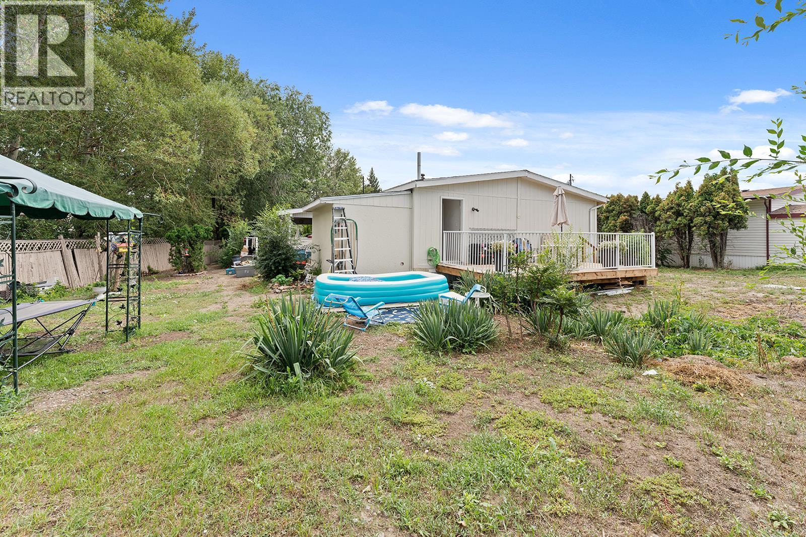 Welcome to this beautifully updated home, perfectly situated in a well-maintained park just minutes from Okanagan Lake, scenic walking paths, and world-class wineries. Thoughtfully renovated throughout, this move-in ready gem offers modern finishes and comfortable living with vaulted ceilings, fresh paint, new lighting, and a bright open-concept kitchen featuring all new appliances (2025). Both bathrooms have been redone with Moen fixtures and sinks, while upgrades such as new windows, PEX plumbing, Decora switches, new fascia and eaves, vinyl skirting, and a roof that was 66% replaced in 2025 provide peace of mind for years to come. Step outside and enjoy one of the largest lots in the park, complete with a brand new 10’ x 20’ back deck, an expansive 30’ x 12’ covered patio, raised garden beds, and a 12’ x 10’ insulated powered shed, offering plenty of space for hobbies or storage. With no neighbours on one side, this home combines privacy, functionality, and charm in a truly unbeatable location. With no age restrictions, this property is a rare find—schedule your viewing today before it’s gone! NO pets allowed (id:6769)