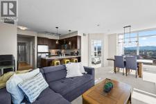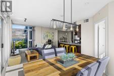 LAKE VIEW IN SKYE TOWER AT WATERSCAPES! Experience downtown living from the 9th floor overlooking the lake. This isn’t just a condo, it’s a front-row seat to the Okanagan dream. The lake-facing patio offers breathtaking views of the water, the city, and the mountains, making it the ultimate spot for morning coffee or watching the fireworks without ever leaving home. INSIDE THE HOME: Floor-to-ceiling windows flood the open-concept living area with natural light, ensuring the view remains the centrepiece. The kitchen is designed for entertaining, featuring premium granite countertops, a gas stove, stainless steel appliances, and bar-style seating. Both bedrooms are generously sized, something that's becoming harder to find, offering true comfort and space. The primary retreat boasts a walk-in closet and an ensuite with dual sinks and stone countertop. You will also find an updated washer/dryer and a second full bathroom with a walk-in shower. Built as a concrete tower, Skye provides better soundproofing then wood frame. RESORT AMENITIES: Life at Waterscapes feels like a year-round vacation. Residents enjoy an outdoor pool, two hot tubs, a BBQ area, a gym, pool tables, and a rentable guest suite. PETS WELCOME: Bring your furry friends! Two dogs of any size are welcome (no vicious breeds). LOCATION: Situated in the heart of the Cultural District, you are steps from the beach, Yacht Club, restaurants, and Prospera Place. (Exterior measurements from iGuide) (id:6769)