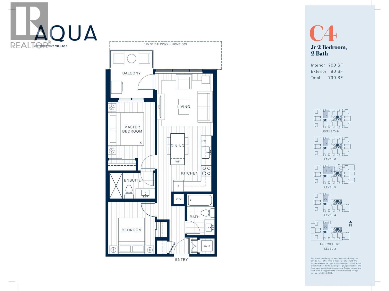 Experience lakefront living reimagined at Aqua Waterfront Village. Located on the 5th floor, just steps from the pool deck, Unit #512 is a Jr. 2-bed, 2-bath home offering approximately 725 sq. ft. of refined interior space & a 90 sq. ft. balcony with Northwest views. This bright and airy home features a split-bedroom layout ideal for privacy and flexibility. Carefully selected finishes throughout, from the luxury vinyl plank flooring and oversized windows to a modern kitchen complete with quartz countertops, under-cabinet lighting, stainless steel appliances, a wine fridge and a concealed hood fan. The bathrooms include natural stone-inspired porcelain tile, wood-tone vanities, a deep soaker tub or a walk-in shower. Enjoy contemporary roller shades, in-suite laundry, & a quiet, energy-efficient heating & cooling system. Residents have exclusive access to Aqua’s exceptional amenities, including a resort-style pool & hot tub, indoor-outdoor social lounge, fireside lounge and coworking hub, two level fitness center as well as membership opportunities to the Aqua Boat Club. 1 parking stall, 1 extra large storage locker & 1 bike storage locker included. Vacant & ready for quick possession. Only a 5% deposit required. Buyer to verify all details & measurements if deemed important. All offers must be written on the Developer’s CPS. (id:6769)
